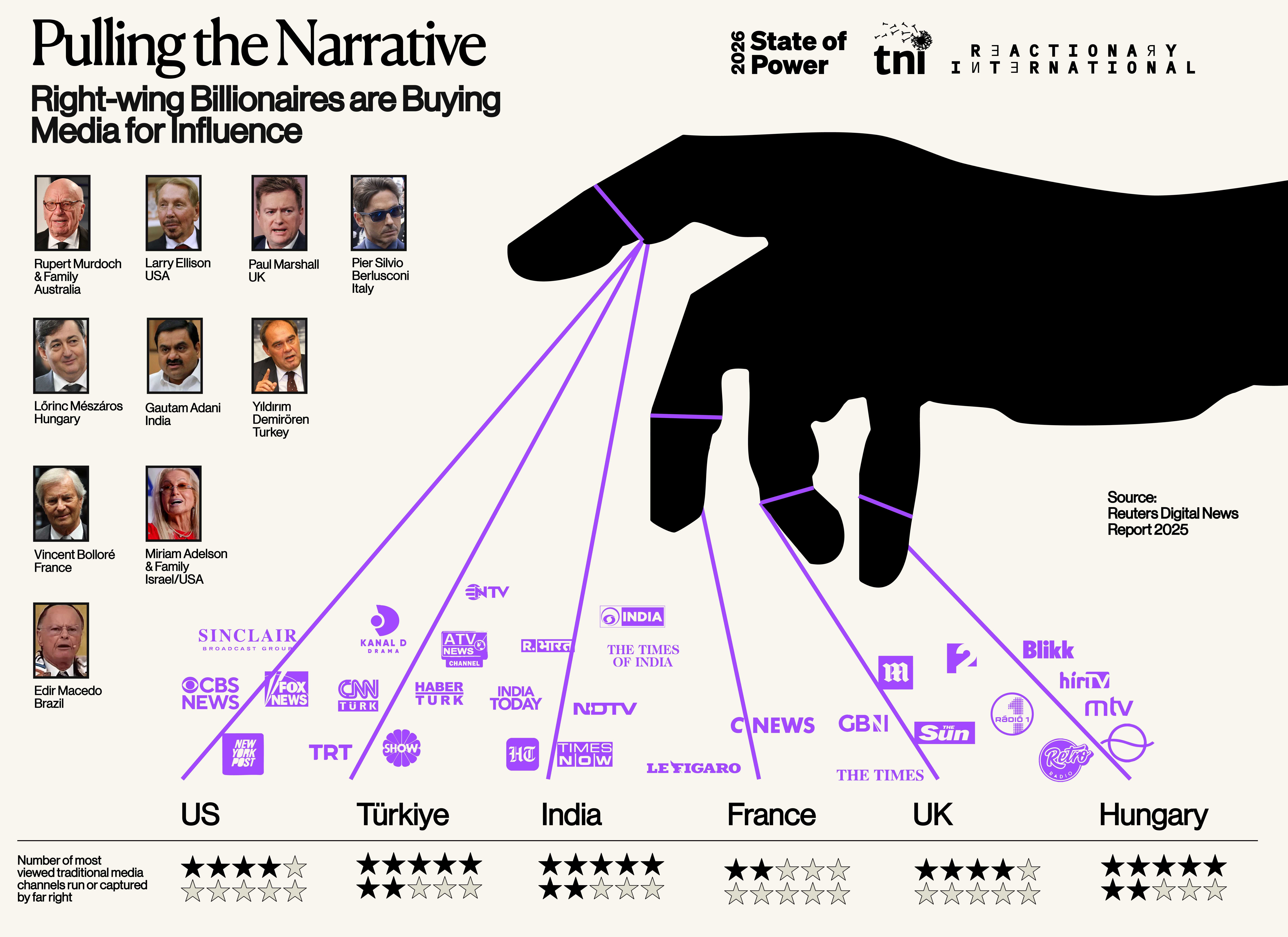 Control over media systems is a central pillar of political power as it shapes the public debate and constrains attempts to hold powerful elites to account. In numerous countries, wealthy individuals aligned with conservative and far-right politics have acquired newspapers, television networks and digital platforms. This concentration of ownership has marginalised dissenting voices, strengthened the reach of authoritarian and racist narratives, and amplified the voices of dangerous far-right leaders.